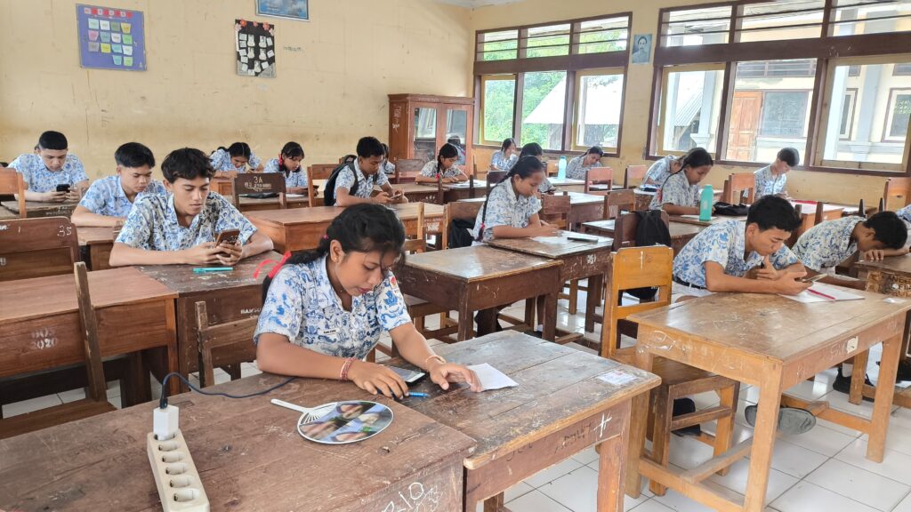 - Siswa mengakses tautan ujian yang dibagikan setiap hari melalui website sekolah dan grup kelas.