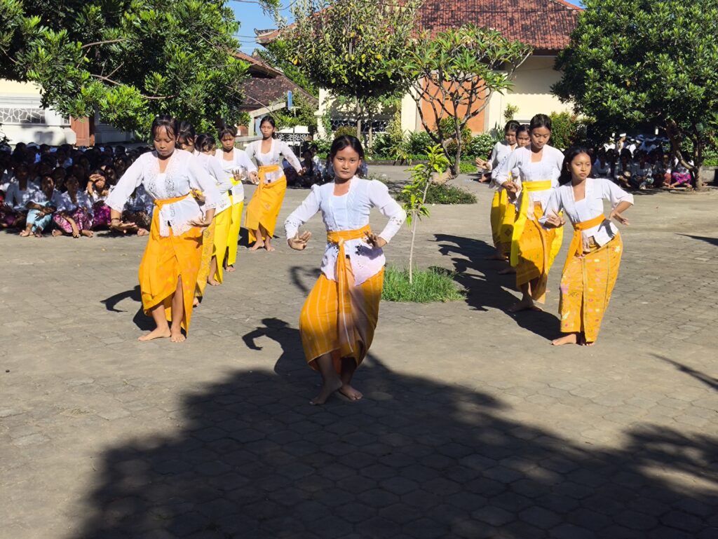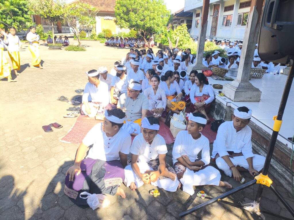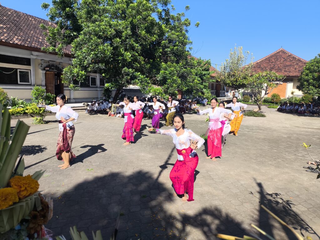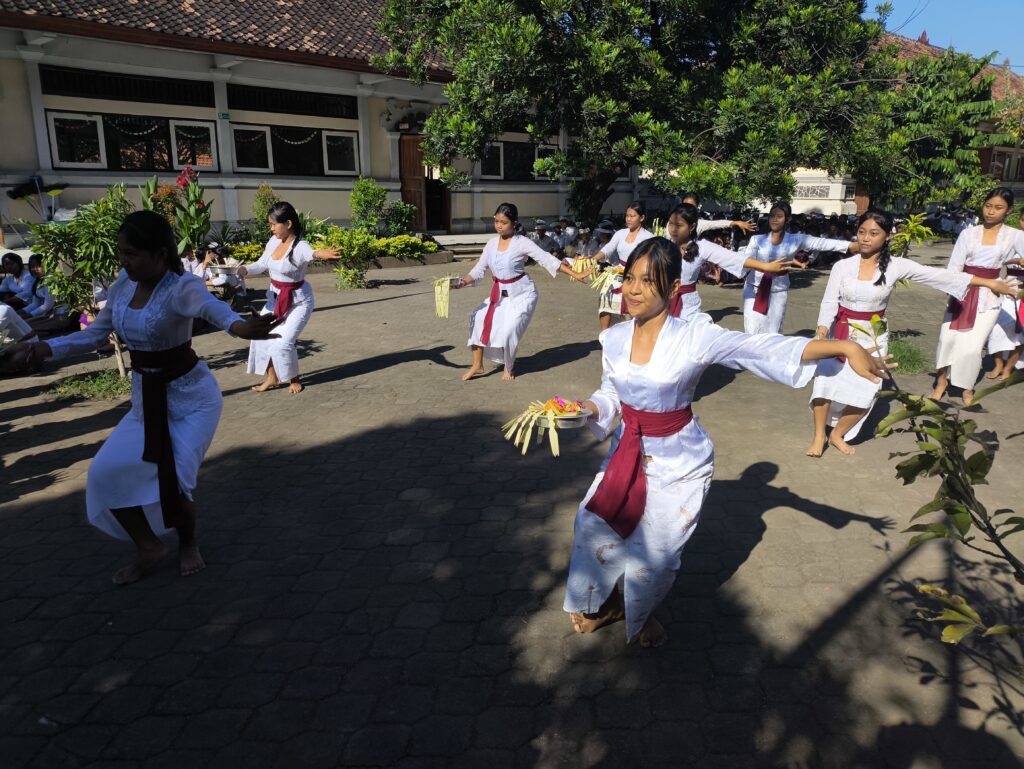 Gerakan yang gemulai dan iringan gamelan yang ritmis menciptakan atmosfer suci, menandai dimulainya prosesi persembahyangan bersama demi memohon waranugraha agar seluruh warga sekolah diberikan kecerdasan dan ketajaman pikiran.